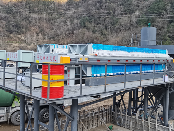 隔膜壓濾機(jī)和常規(guī)箱式壓濾機(jī)的主要區(qū)別在于,在濾板的兩側(cè)都增加了兩個(gè)彈性膜(復(fù)合橡膠膜是一個(gè)整體式膜。在操作期間,當(dāng)進(jìn)料完成時(shí),將高壓流體介質(zhì)注入膜中,并使整個(gè)膜膨脹以過濾濾餅,以進(jìn)一步使濾餅脫水,這是壓力過濾。在隔膜壓濾機(jī)運(yùn)行期間,液壓系統(tǒng)使用液壓油作為壓力載體來傳遞內(nèi)部壓力。